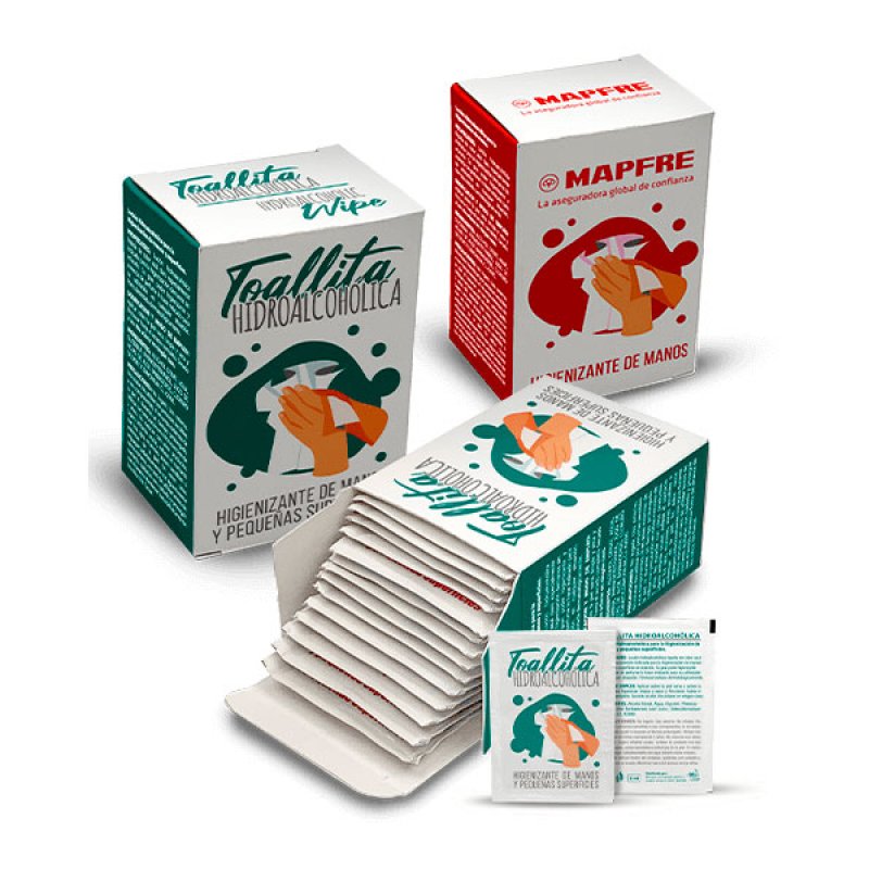 Caja con Sachet de Toallitas Antibacteriales