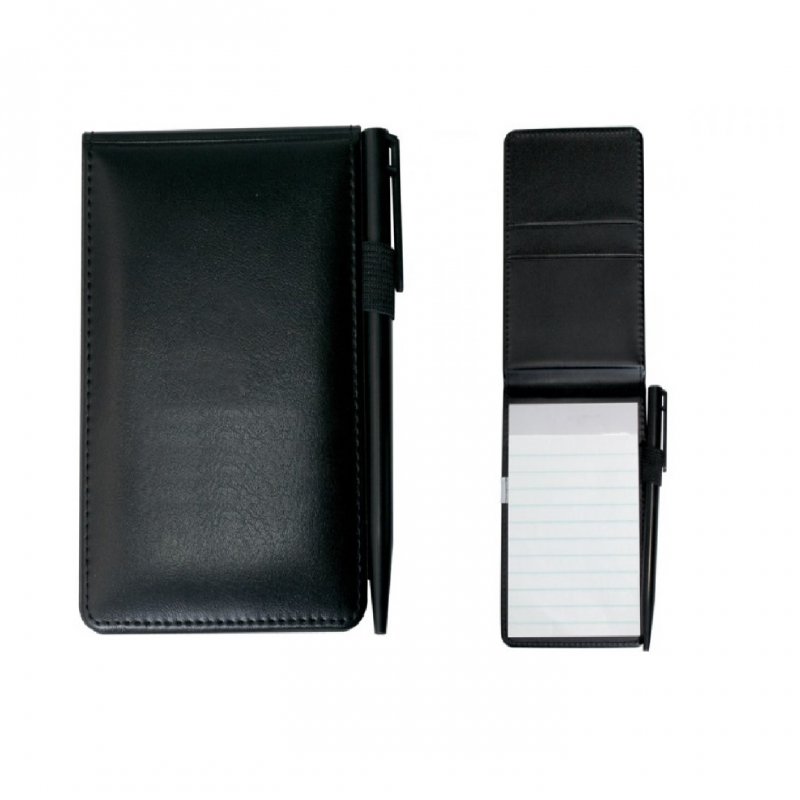 Libreta cuerina de notas con lapicero. 50 hojas blancas rayadas Lapicero color negro incluido