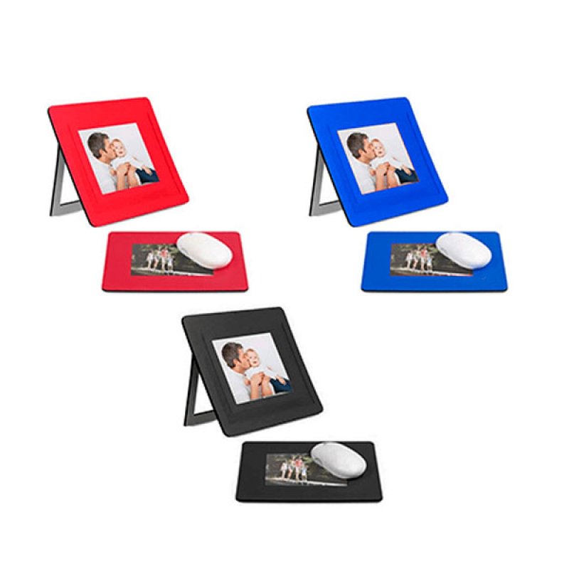 Mousepad de corospum para uso en superficie plana o como portaretrato ya que cuenta con un marco adicional en la parte posterior que hace posible su doble funcion.