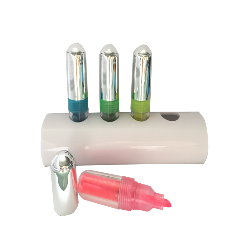 Medidas: Soporte: Ancho 14,6cm Alto 3cm - Resaltadores: Alto: 8cm Diámetro: 1,6cm (Aprox.) Descripcion: Resaltadores líquidos con soporte