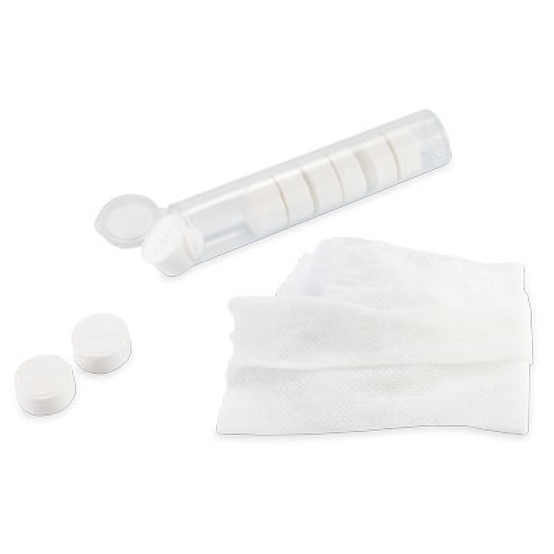Contenido: Estuche plástico transparente con 10 toallas humedas comprimidas.